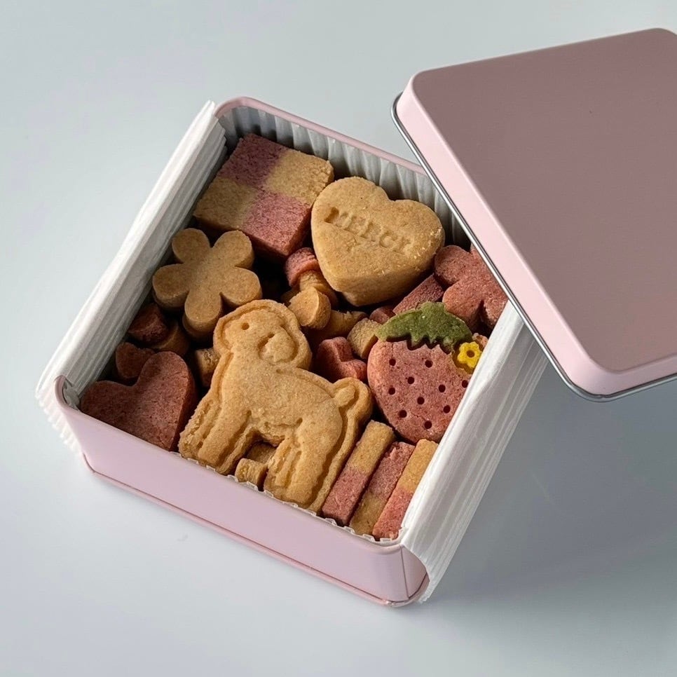 無添加にこだわった、ワンちゃんも人も食べられる米粉のクッキー缶✨